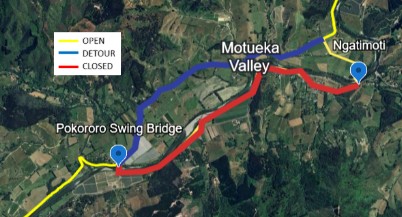 - Pokororo Bridge to Ngatimoti - Detour via the Motueka River West Bank Rd
